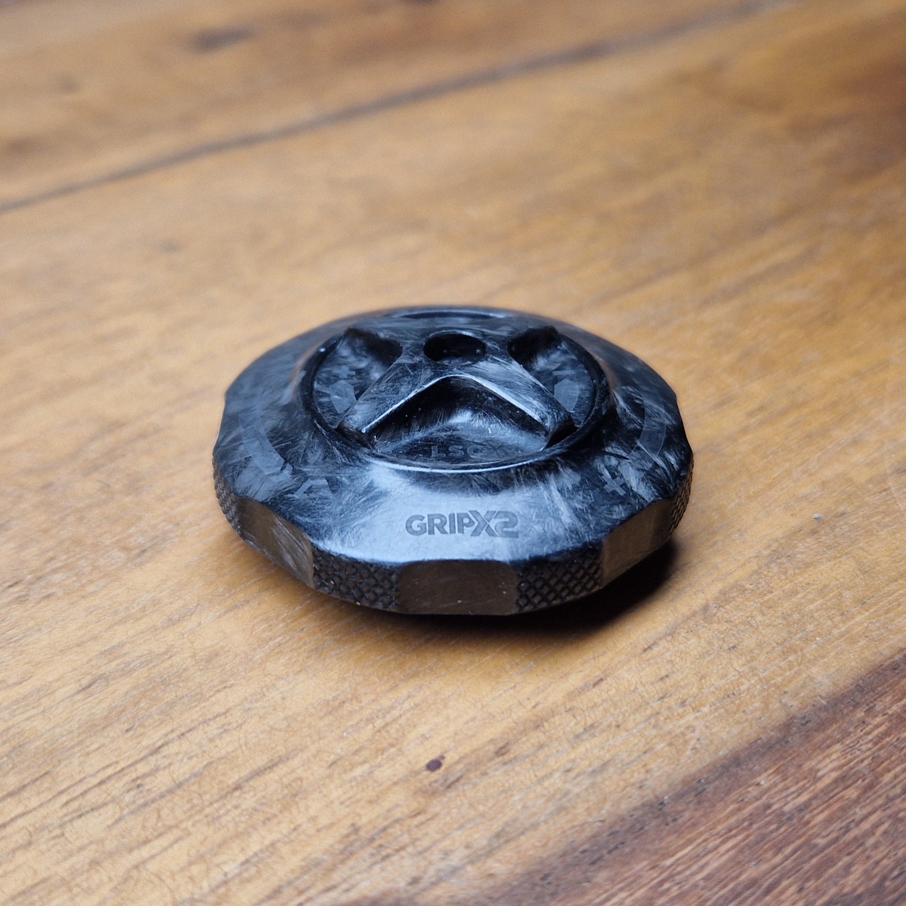 This adjuster for Fox forks with GRIP X2 cartridge is handmade of forged carbon.