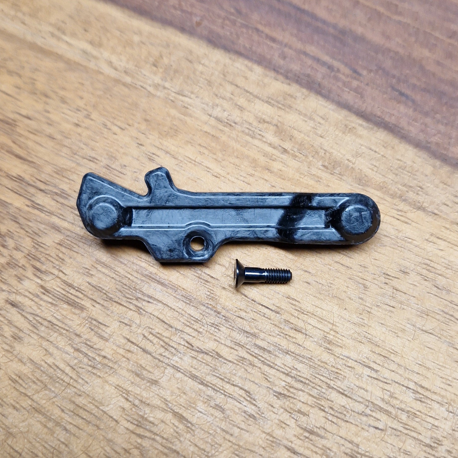 This kit contains a handmade bottom carbon inner link bottom for the SRAM transmission rear derailleur and is made of carbon rovings and forged carbon. Bushings are included for easy installation. By using this part you can achieve a weight saving of 4,4g.